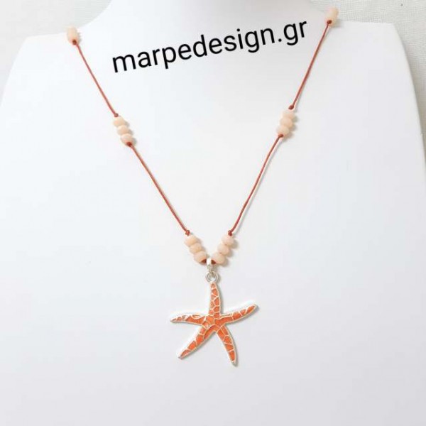 ΚΜΠΓ141-Κολιέ μακρύ με κορδόνι και κρύσταλλα και αστερία από μέταλλο και σμάλτο