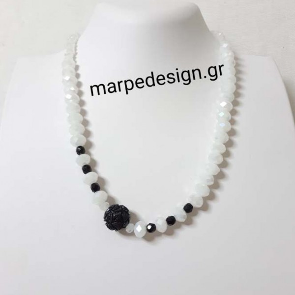 Κολιέ κοντό με κρύσταλλα άσπρα μαύρα και μαύρο κοράλλι