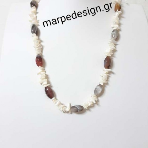Κολιέ μήκους 53 εκ. με πέτρες γκρι καφέ αχάτες και φίλντισι