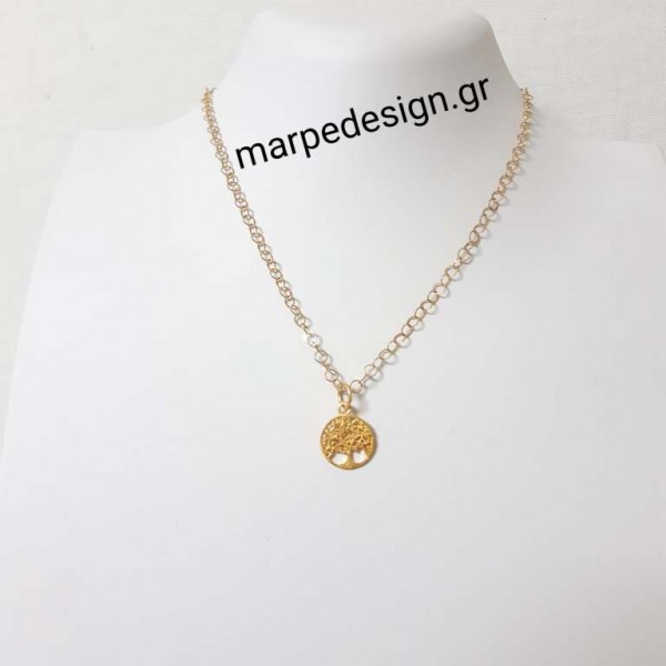 Κολιέ μήκους 43 εκ.από αλυσίδα ατσάλινη επιχρυσωμένη με μοτίφ ασημ. επιχρυσωμένο δενδρο της ζωής