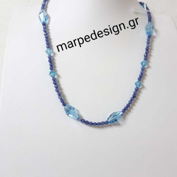 Κολιέ μήκους 49 εκ.από τζέιντ ζαφείρι και γαλάζια κρύσταλλα σβαρόφσκι