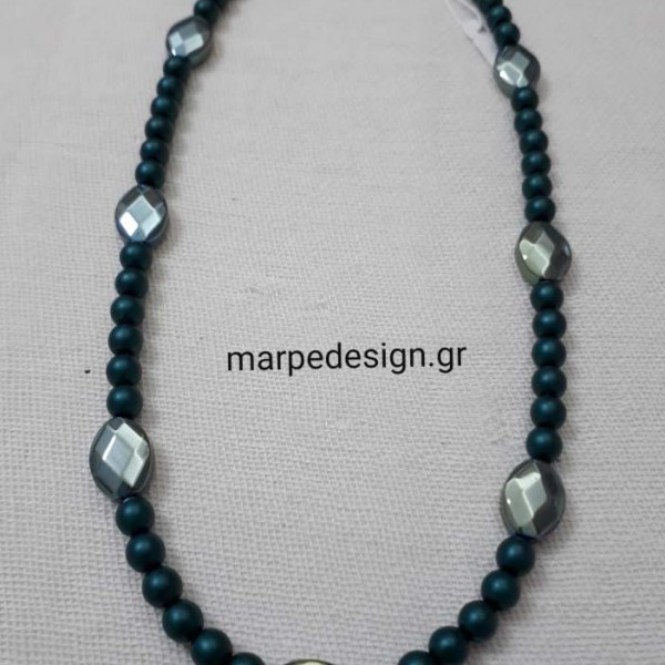 ΚΜΠΓ351-Κολιέ μήκους 45 εκ. από πέρλα preciossa κυπαρισσί και αιματίνη οβάλ πλακέ πράσινο