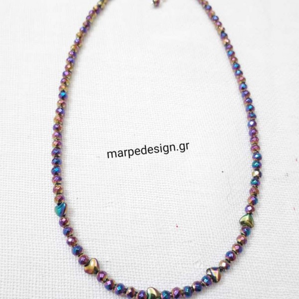 Κολιέ μήκους 41 εκ. από πολύχρωμο αιματίτη ταγιέ και καρδούλες