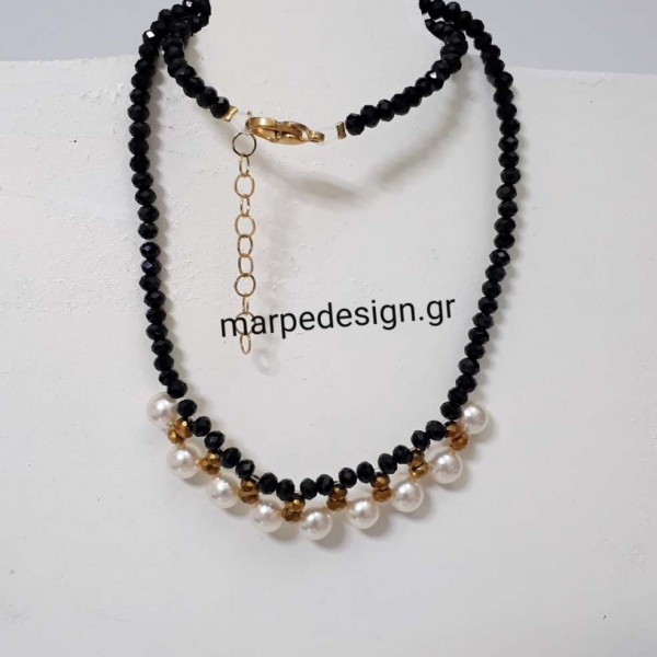 Κολιέ μήκους 38 εκ. από κρυσταλλάκια μαύρα και κρεμαστές πέρλες