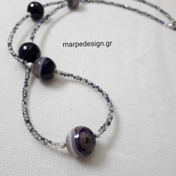 ΚΜΠΓ048-Κολιέ με μαύρους αχάτες και μαργαριτάρια