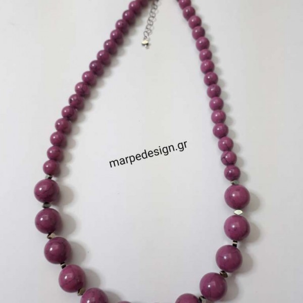 ΚΜΠΓ380-Κολιέ μήκους 45 εκ. από τζέιντ μωβ με νερά σε δύο μεγέθη και ανάμεσα αιματίτη