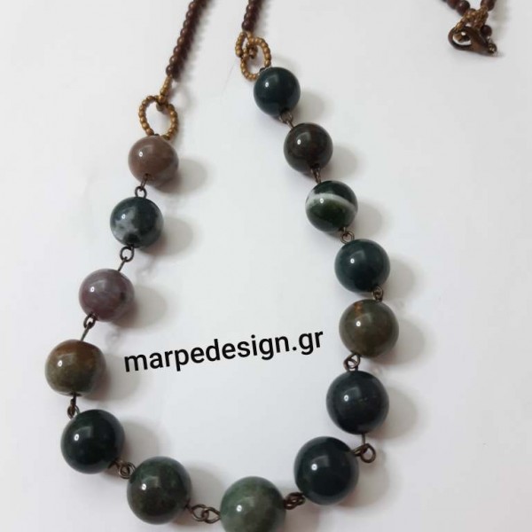 Κολιέ μήκους 63 εκ.από τουρμαλίνες πράσινες και αιματίτη μικρό καφέ
